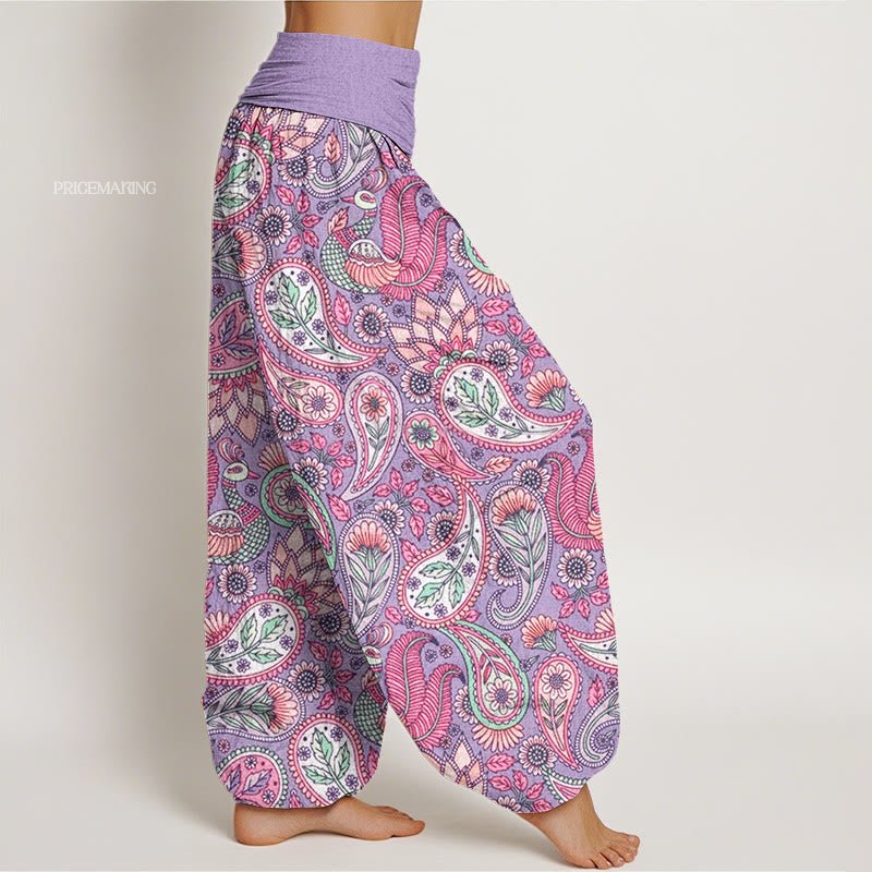 Design: These women's yoga harem pants showcase a stunning Bohemian cashew flower,peacock and sunflower pattern, perfect for adding a unique touch to your activewear collection.