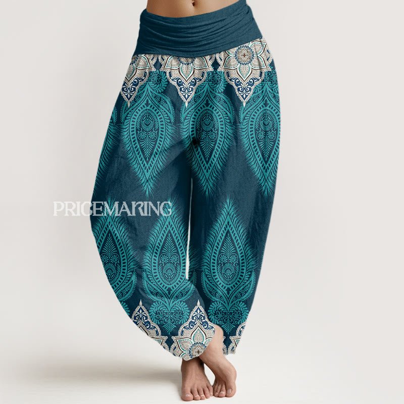 Design: These women's yoga harem pants showcase a stunning Bohemian floral feather pattern, perfect for adding a unique touch to your activewear collection.