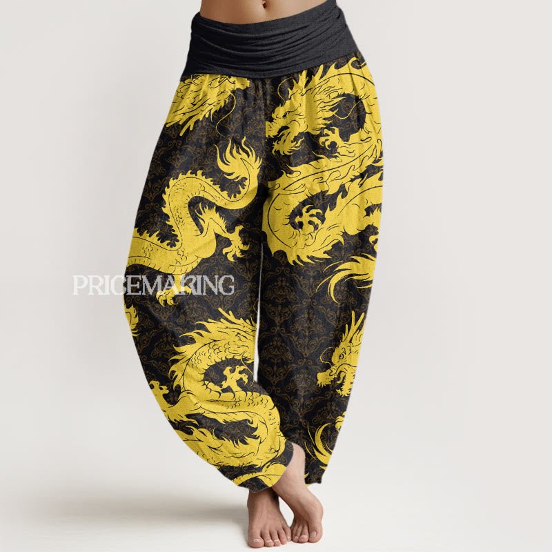 Design: The Harem Pants featuring a dragon design symbolize power, strength, and good fortune. In many cultures, dragons are revered as majestic creatures representing protection and prosperity, making this design a bold statement of confidence and cultural significance for the wearer.