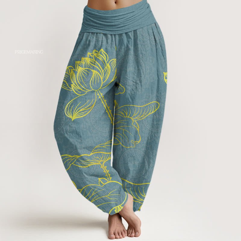Design: The design of these pants draws inspiration from nature's serenity, featuring flowing lotus flower patterns intertwined with delicate mandala elements, symbolizing purity, harmony, and balance.