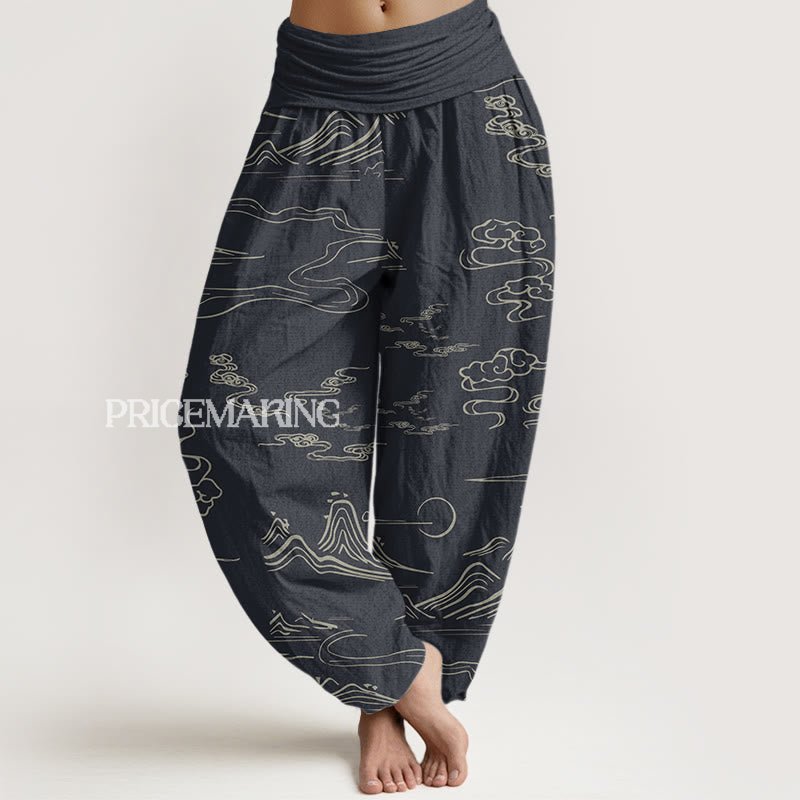 Mountain Moon Harem Pants feature intricate line art patterns of mountains, moons, and auspicious clouds on breathable, lightweight fabric. The elastic waistband provides a secure and comfortable fit, while the relaxed design allows for unrestricted movement. Representing harmony and tranquility, these pants are perfect for yoga, meditation, or creating a calming and balanced atmosphere in your daily activities.💕