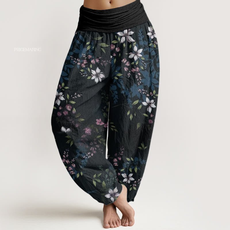 Design: These pants showcase a delicate floral pattern, featuring intricate blossoms and leaves that create a romantic and elegant aesthetic. The design flows beautifully across the fabric, adding a touch of nature-inspired charm to the overall look.