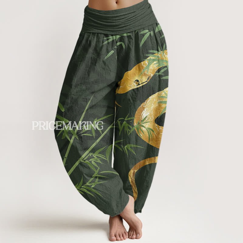 Design: The harem pants featuring snakes and bamboo designs symbolize transformation, resilience, and strength. The snake represents renewal and the shedding of old identities, while bamboo signifies flexibility and integrity, encouraging wearers to embrace change and maintain balance in their lives.