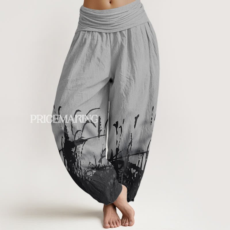 Design: The Harem Pants featuring wild grass patterns symbolize resilience, natural beauty, and a connection to the earth. The depiction of wild grass reflects a sense of freedom and adaptability, encouraging wearers to embrace their individuality and the organic flow of life, celebrating the simplicity and elegance found in nature.