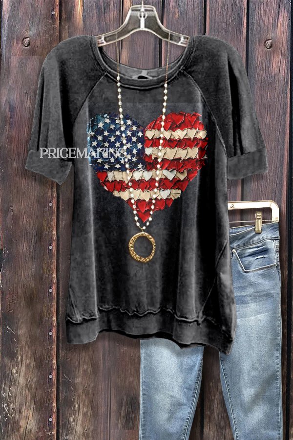 Chic America Heart Print Patriotic Sweatshirt