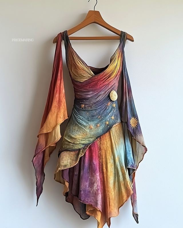 Handmade color block gradient rainbow irregular sun dress 0db3