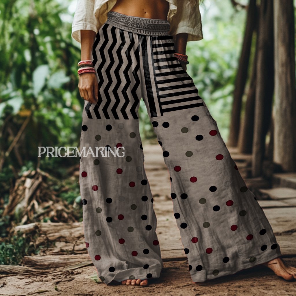 Retro Abstract Geometric Print Loose Wide Leg Pants