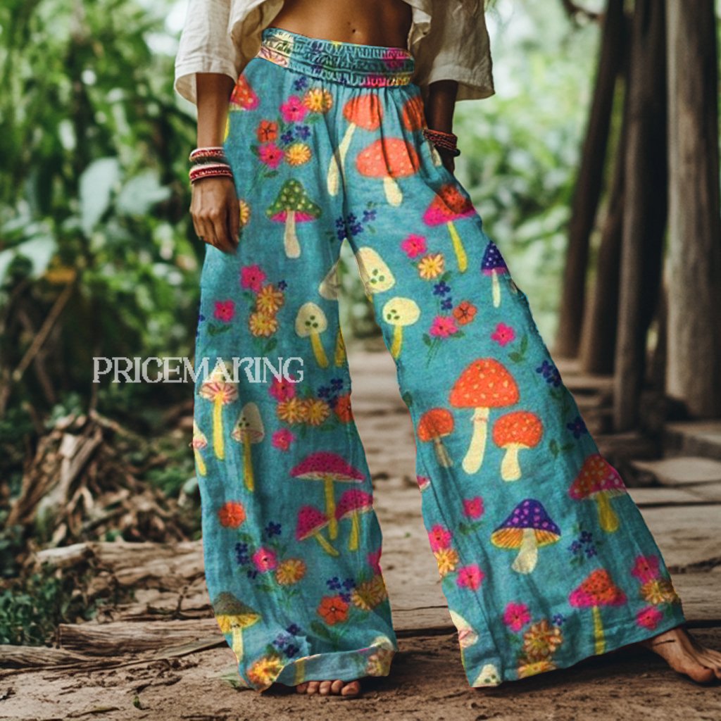 Vintage Mushroom Floral Print Loose Wide Leg Pants