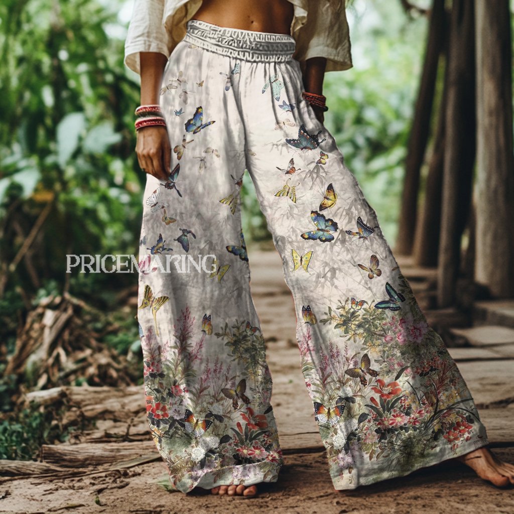 Vintage Butterfly Floral Print Loose Wide Leg Pants