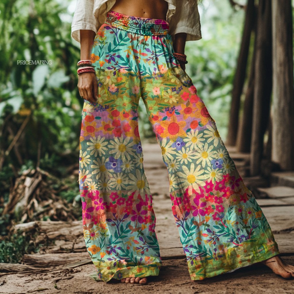 Vintage Bohemian Floral Print Loose Wide-leg Pants