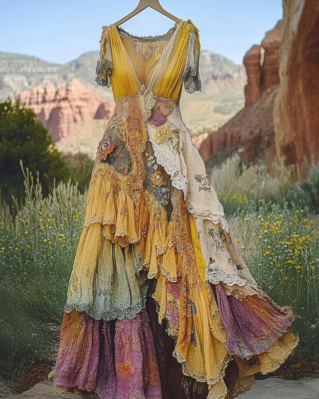 Summer Vintage Floral Lace Patchwork Dress 9246