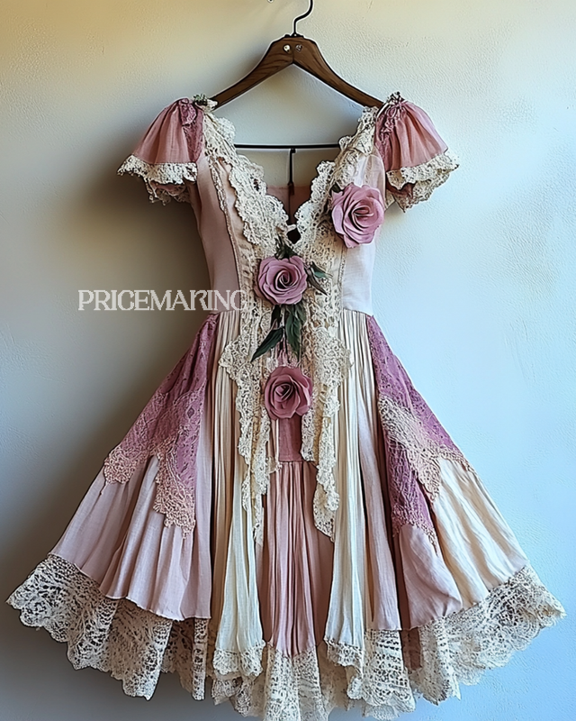 Summer Vacation Irregular Lace Patchwork Dress 233b