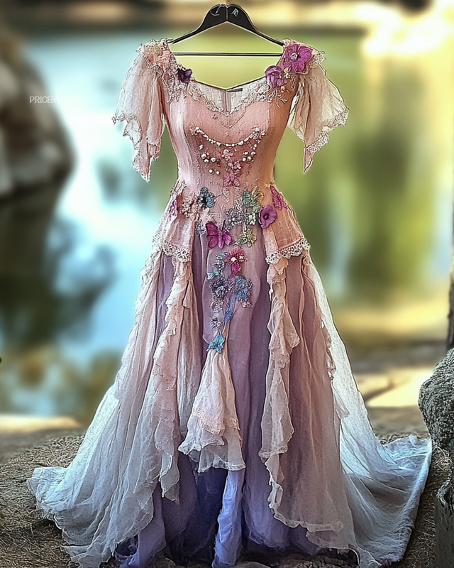 Summer Irregular Lace Patchwork BeadedRuffle Dress 5fa4