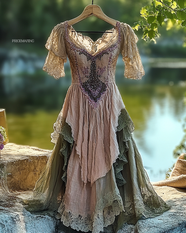 Summer Irregular Lace Patchwork BeadedRuffle Dress 9a62