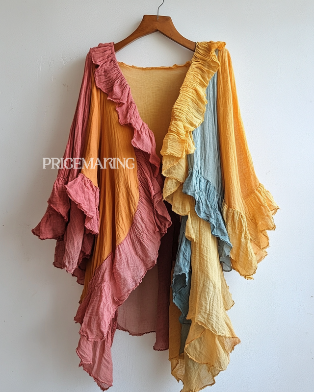 Vacation Elegant Color Block Irregular Kimono c4b5