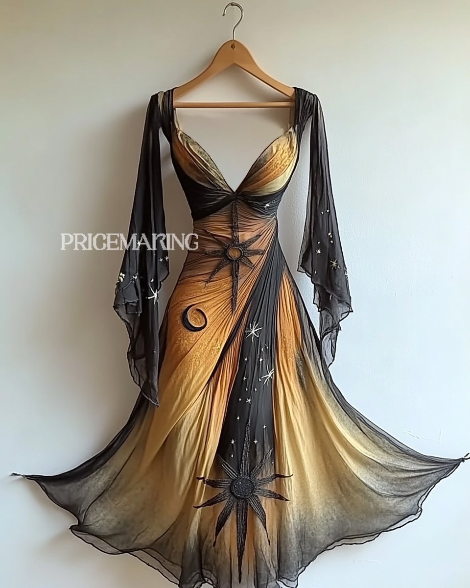 Please note that changes in color or texture are part of the story, this is an original design from our designer for the Sun and Moon collection - celestial themed embroidery paired with mesh material, the design is unique and elegant. We photographed in daylight and made every effort to present the colors as accurately as possible, however, the design and colors may vary slightly due to the lighting of the photos