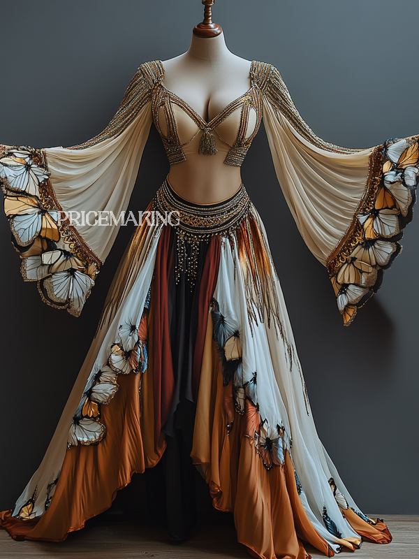 Vacation handmade swing butterfly top + skirt two-piece set 207f