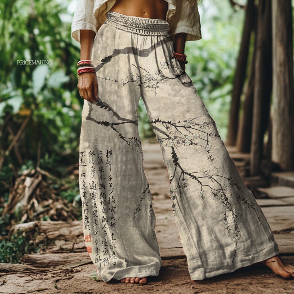 Vintage Art Print Loose Wide Leg Pants