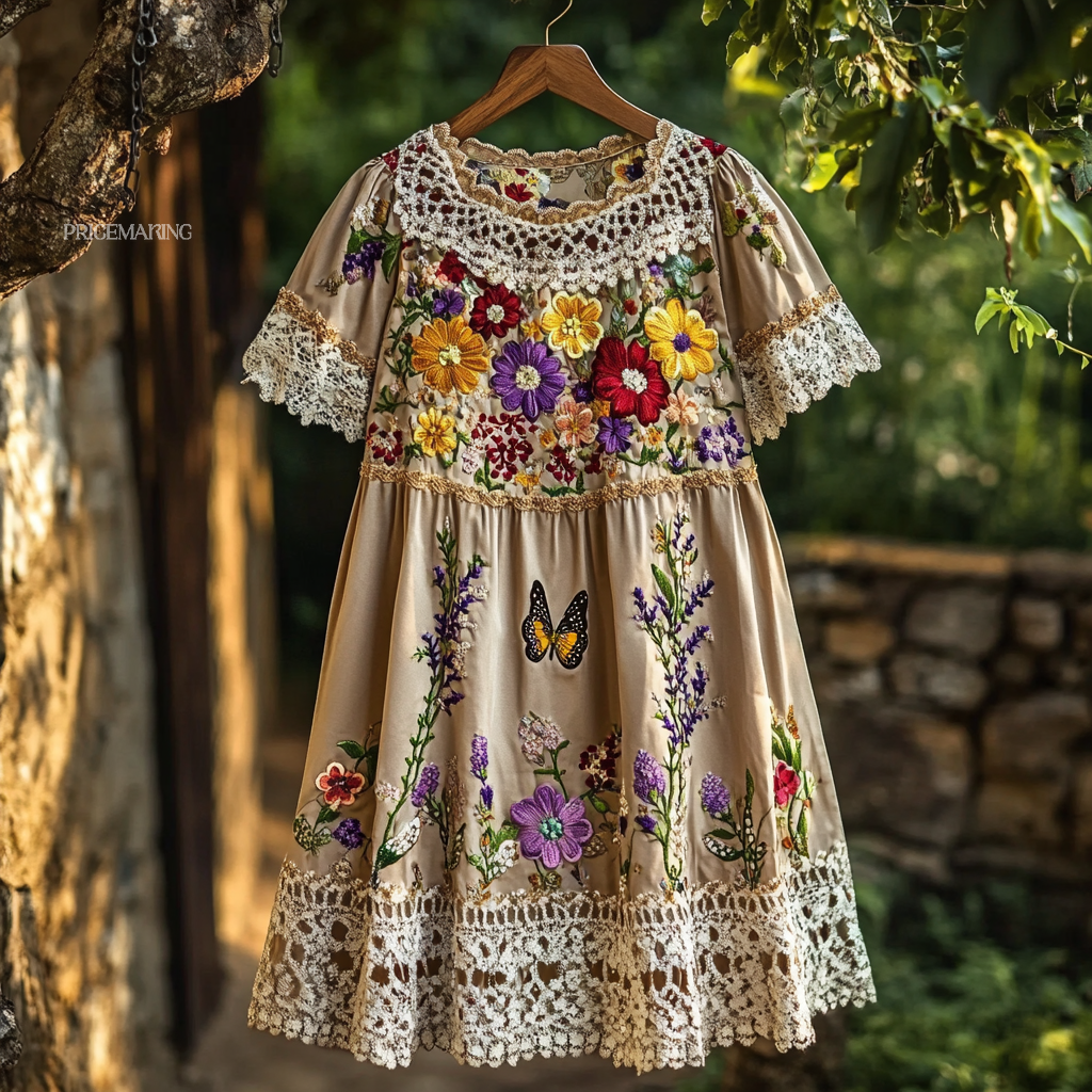 Pattern:Floral And Butterfly Embroidery