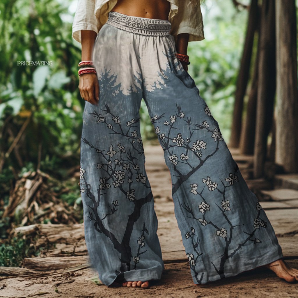 Vintage Floral Art Print Loose Pants