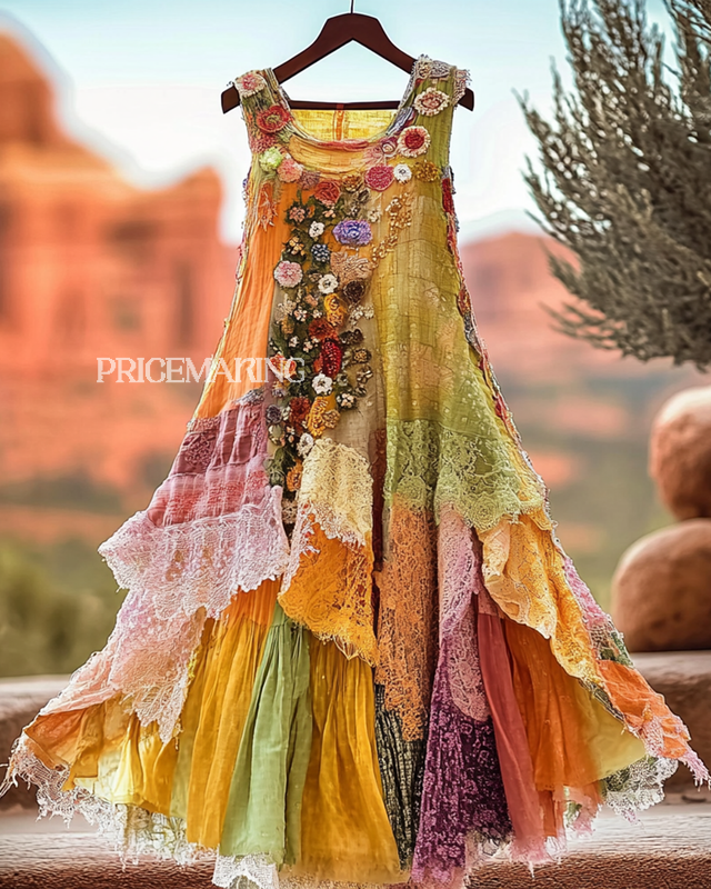 Vintage Floral Embroidery Lace Patchwork Dress a9a1