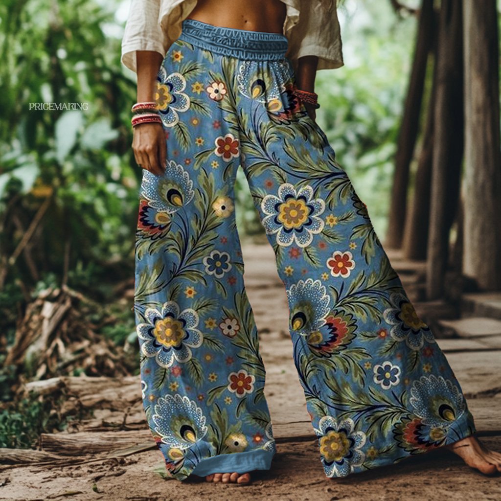 Vintage Floral Print Loose Wide-leg Pants