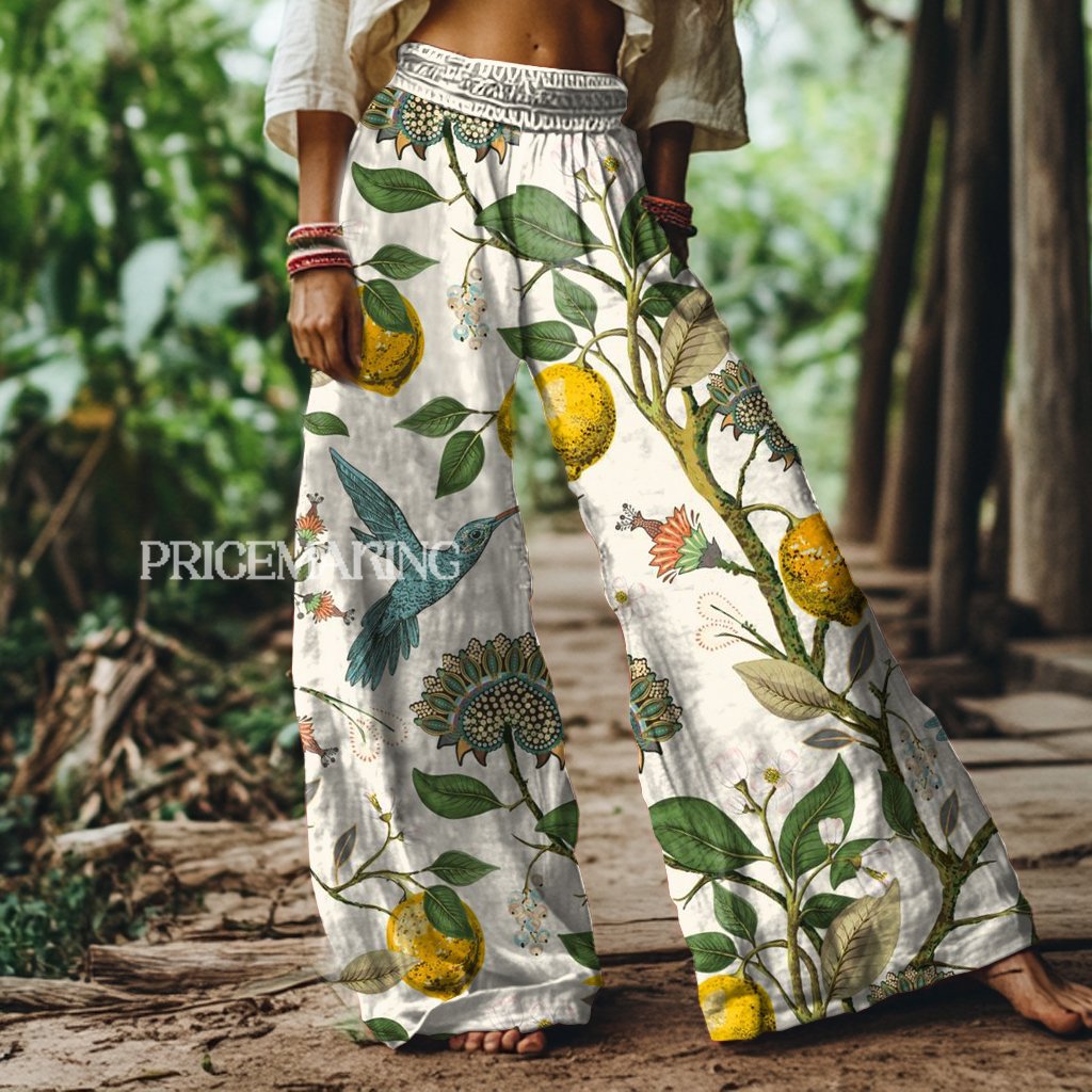 Vintage Lemon Tree Bird Art Print Loose Pants