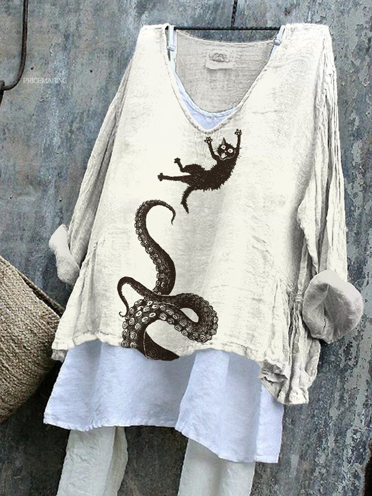 Vintage Octopus and Cat Print Cozy Flowy Tunic