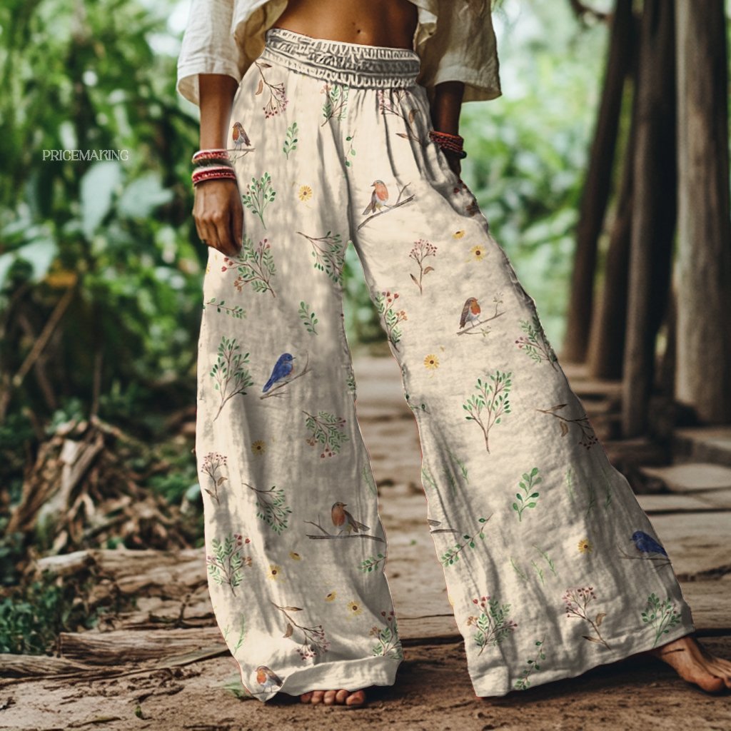 Vintage Robin Floral Print Loose-fitting Wide-leg Pants